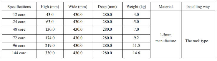 (6).Can be assembled into separate optical fiber distribution frame, can also with digital wiring, audio wiring units installed in a cabinet inside the frame constitute a comprehensive distribution frame., fixed and protection function, introduced with fiber optic cable, fiber optic cable terminal and tail fiber welding function, adjustable line function and the jump fiber optical fiber core and tail fiber storage and protection, etc.